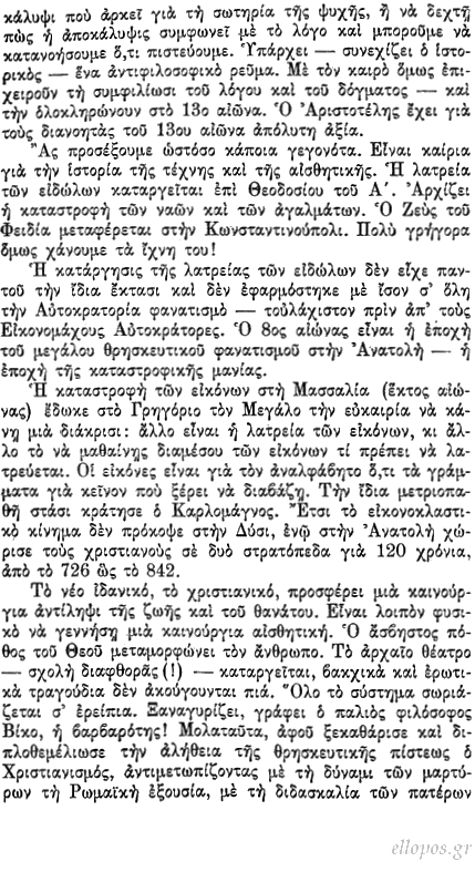 Ἀπό: Ἄριστου Καµπάνη, Ἱστορία τῶν αἰσθητικῶν θεωριῶν, 1936. Βλ. Ἀναδηµοσίευση στὶς ἐκδ. Γαλαξία, 1963, σσ. 148-162